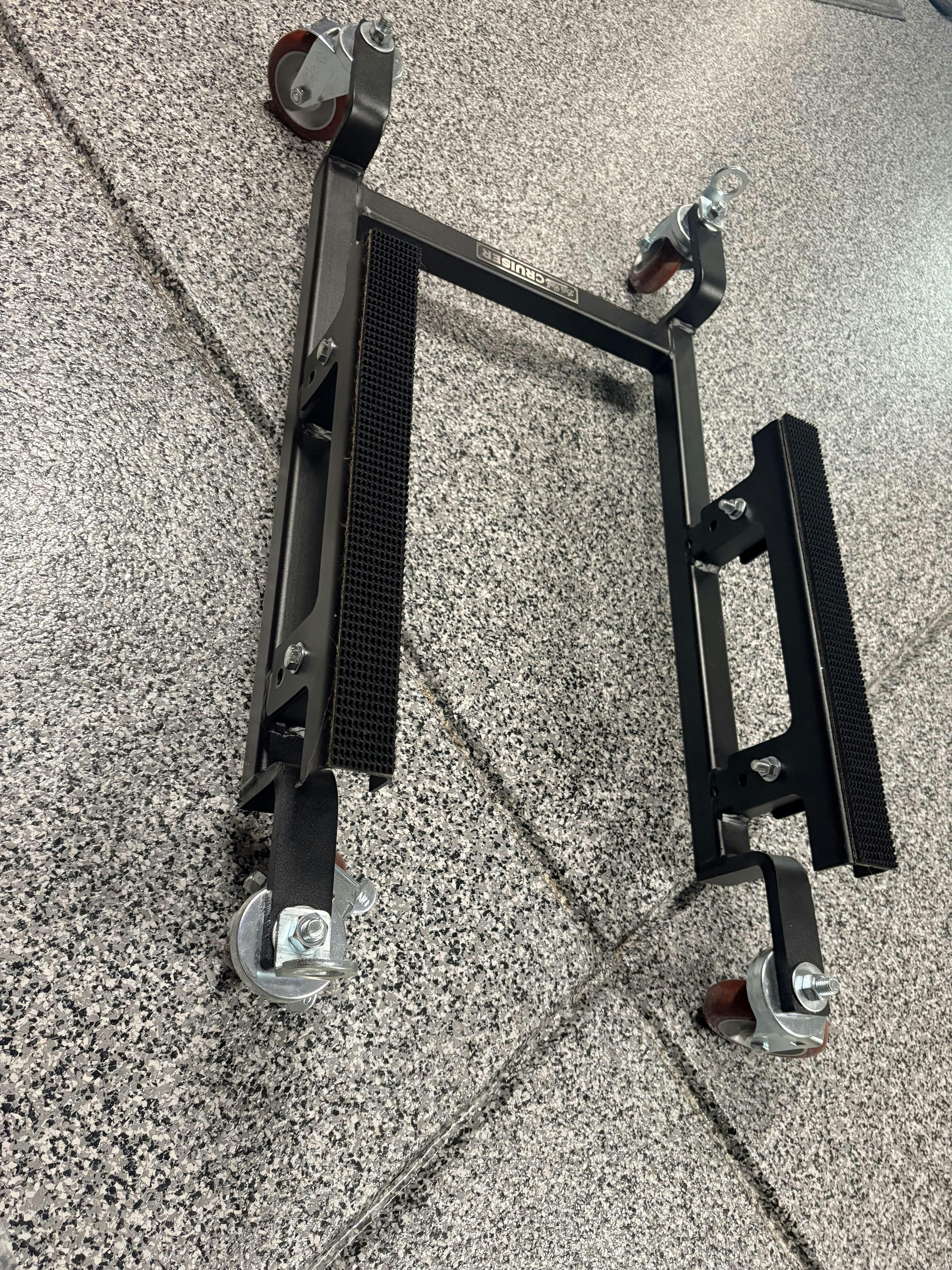 The Let’s Roll Cruiser® motorcycle dolly is an easy-rolling motorcycle garage dolly for precise movement to store motorcycles – big and small.
