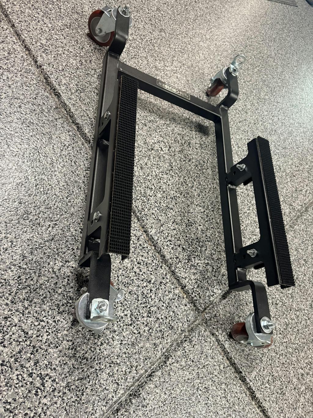 The Let’s Roll Cruiser® motorcycle dolly is an easy-rolling motorcycle garage dolly for precise movement to store motorcycles – big and small.
